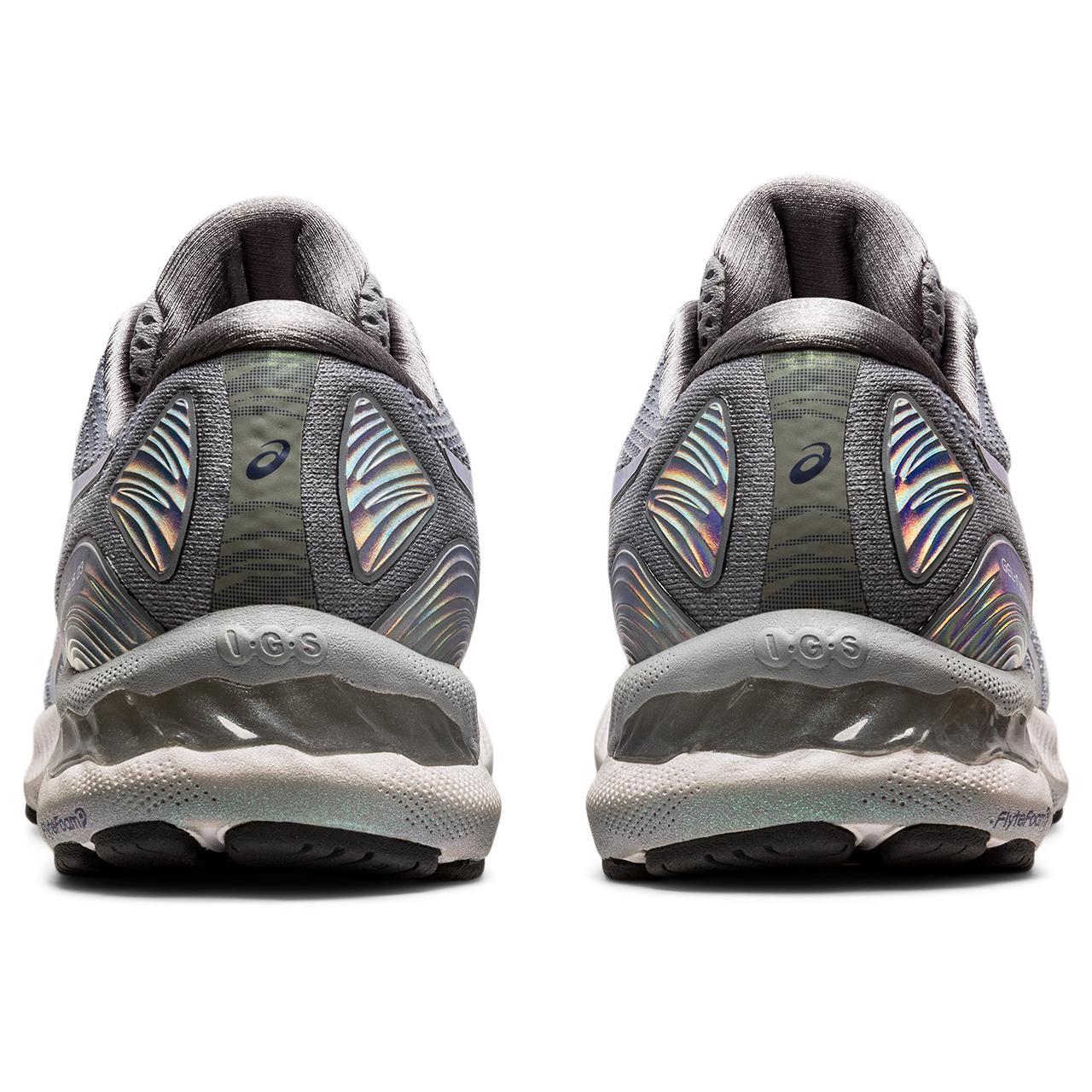 The GEL-NIMBUS 23 PLATINUM running shoe continues to offer excellent comfort and long-run impact absorption. Its improved stability provides a more balanced stride that's followed by smoother transitions. Part of our PLATINUM collection, this shoe is accented with a series of polished hues throughout the design.