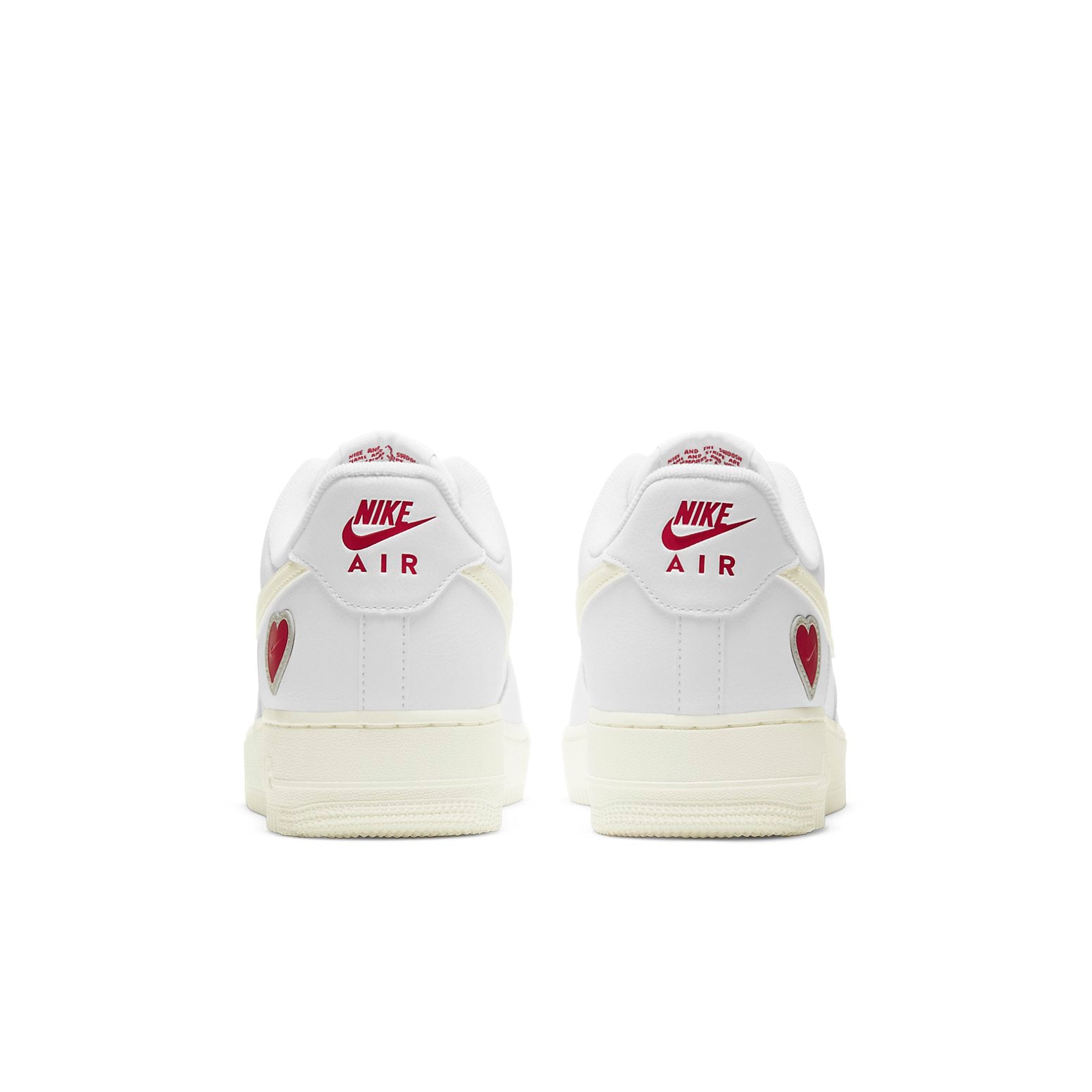 This nithtke athtir forthtce 1 "Valentine's Day" is built with a white chocolate palette on key components of the shoe. It features a brandishes with a heart-shaped patch complete with embossed logo hits.