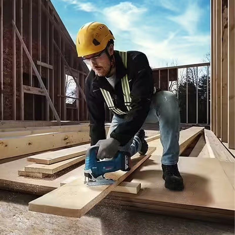 La scie sauteuse BOSCH GST 18V-125 B solo est un outil sans-fil fiable adapté à toutes les applications de découpe. Grâce à sa conception robuste et son moteur sans charbon, elle offre une très grande autonomie et une durée de vie prolongée. Cette scie sauteuse est équipée de fonctions essentielles telles que le porte-lame SDS, un éclairage LED, et un mouvement pendulaire à 4 positions, garantissant une coupe précise et facile dans divers matériaux.